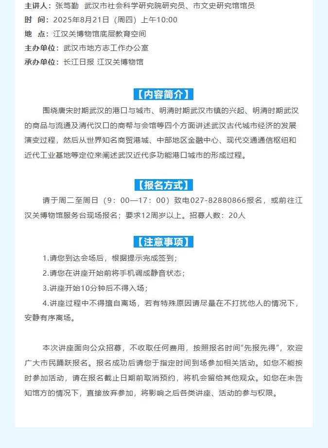 讲座报名 | 从九省通衢到商贸港城兴起 聚焦武汉历史上的经济之重